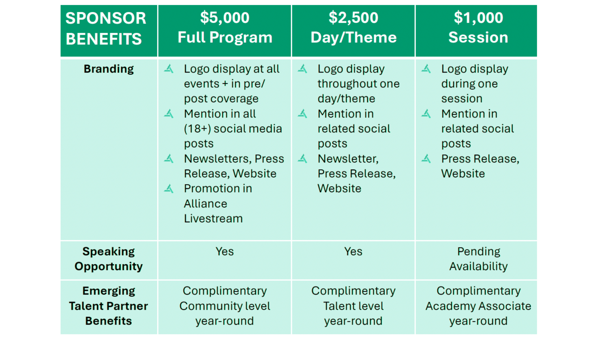 Sponsorship levels range from $1,000 to $5,000, with benefits including:
