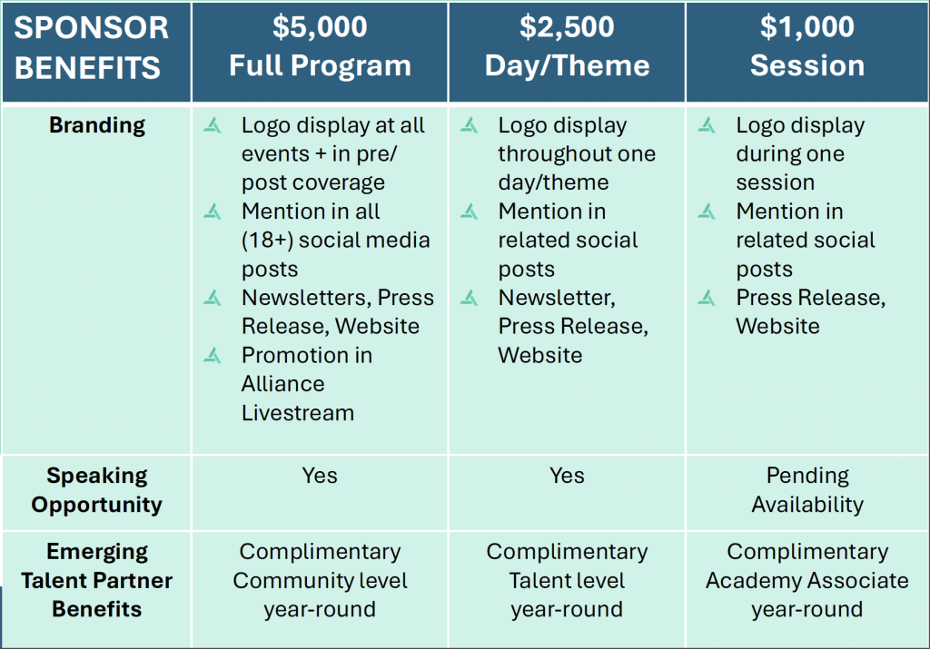Now is the time to sponsor and stand out as a champion of emerging talent.