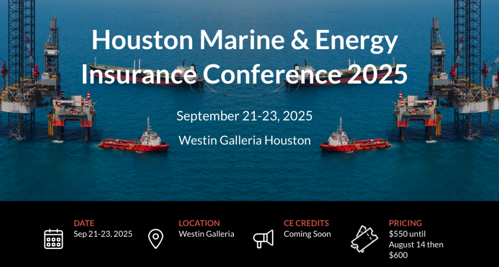 Both Connor and Angela emphasized the importance of attending the 2025 Houston Marine & Energy Insurance Conference, being held September 21-23 at the Westin Galleria Houston. The conference provides an opportunity to expand professional networks, earn CE credit, and learn more about marine and energy insurance. For more information, see www.houstonmeic.com.